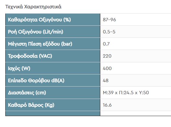 Διαθέτει Συναγερμούς Χαμηλής Καθαρότητας Οξυγόνου και Ορθής Λειτουργίας της Συσκευής.