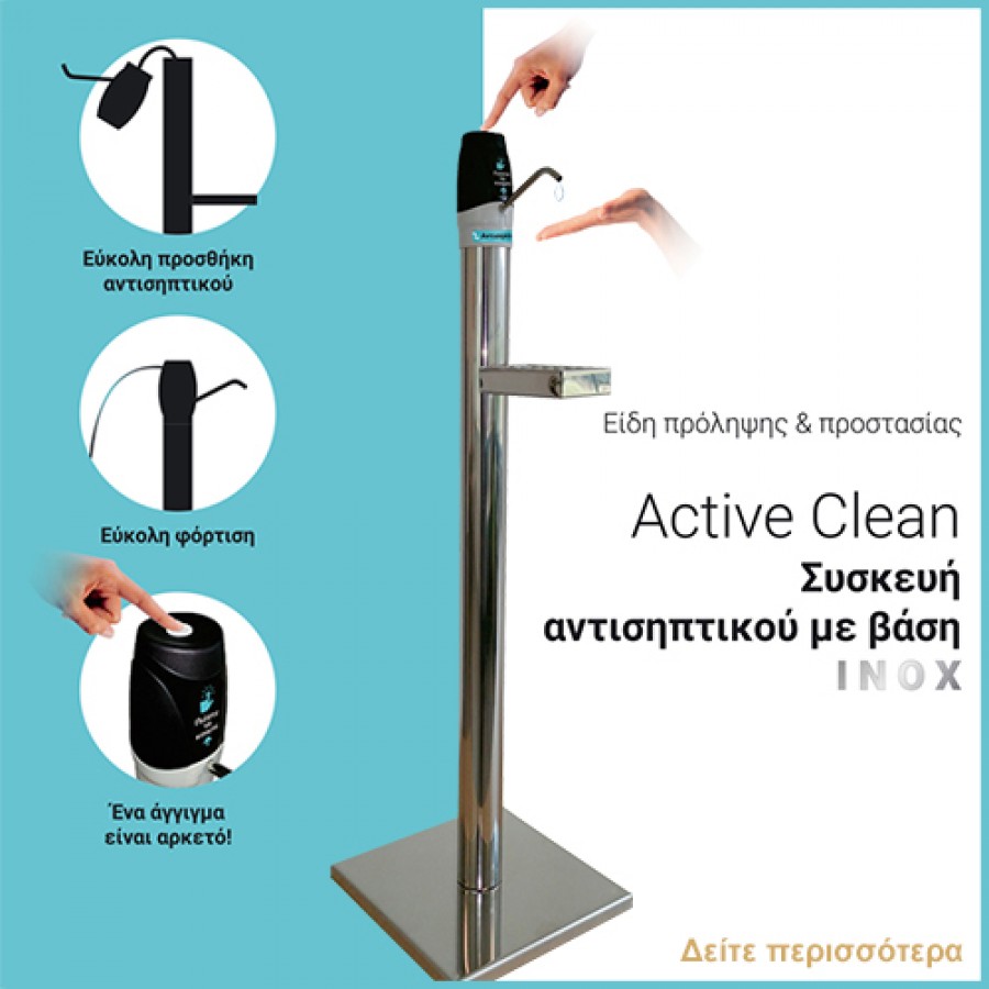 Επιδαπέδια συσκευή ΙΝΟΧ αντισηπτικού ηλεκτρική Active clean