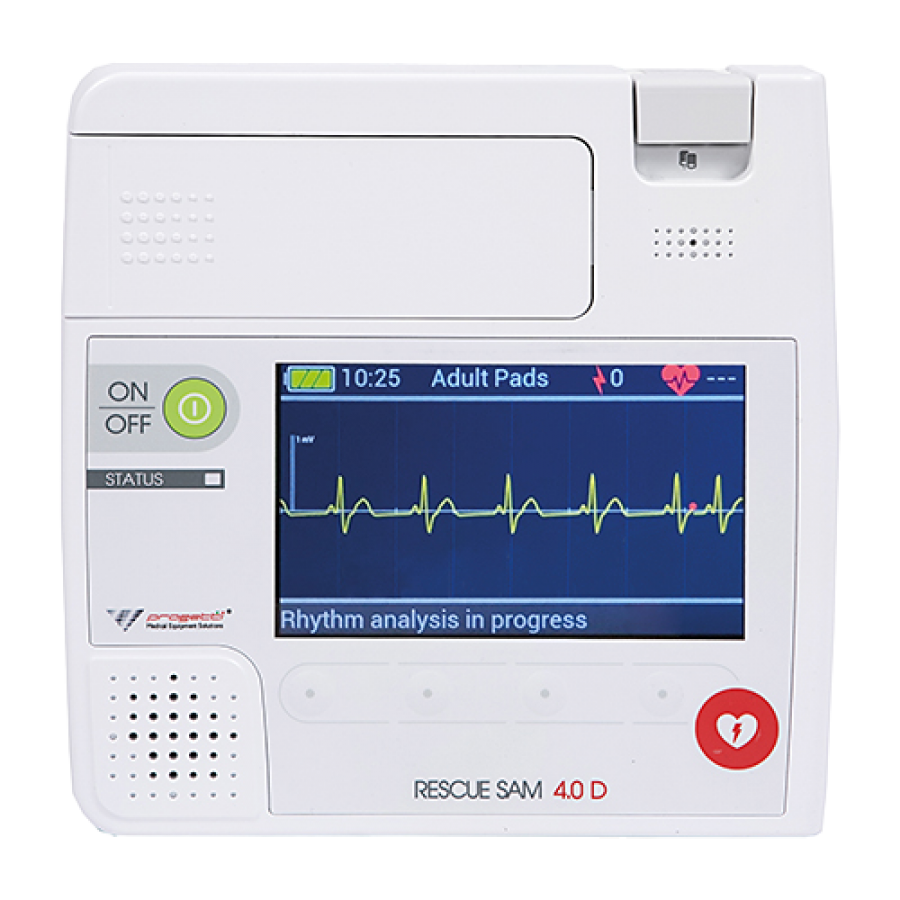 Ο Rescue Sam 4.0D είναι ένας σύγχρονος φορητός απινιδωτής με μεγάλη έγχρωμη οθόνη 7" σχεδιασμένος για μια γρήγορη και εύκολη αντιμετώπιση κοιλιακών μαρμαρυγών (VF) και κοιλιακών ταχυκαρδιών (VT).