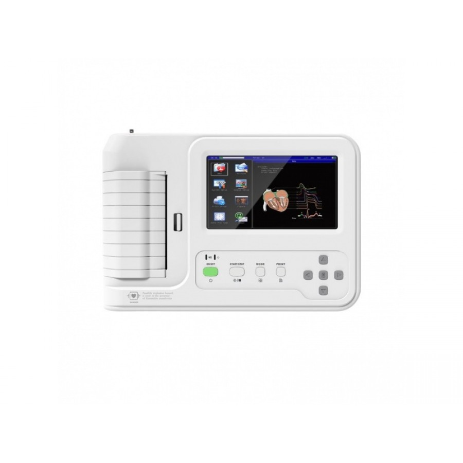 Η συσκευή καταγράφει ευκρινώς και με ακρίβεια σε πραγματικό χρόνο κυματομορφή ΗΚΓ 6 καναλιών με παράλληλες επισημάνσεις (αριθμό απαγωγής, ευαισθησία, ταχύτητα χαρτιού, κατάσταση φίλτρου κλπ).
