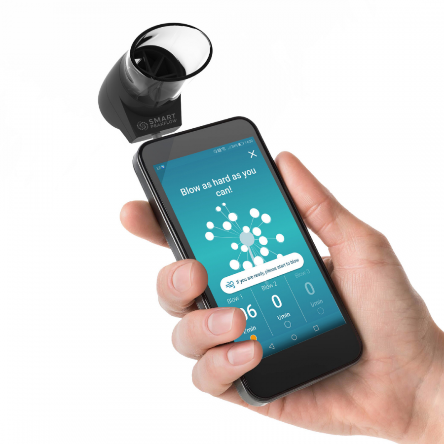 Μέσω της εφαρμογής Smart Peak Flow ο χρήστης μπορεί από το σπίτι να καταγράψει την αναπνευστική του ροή (PEF) και στη συνέχεια να αποθηκεύσει ή να μοιραστεί τα αποτελέσματα με τον θεράποντα ιατρό του άμεσα και εύκολα.