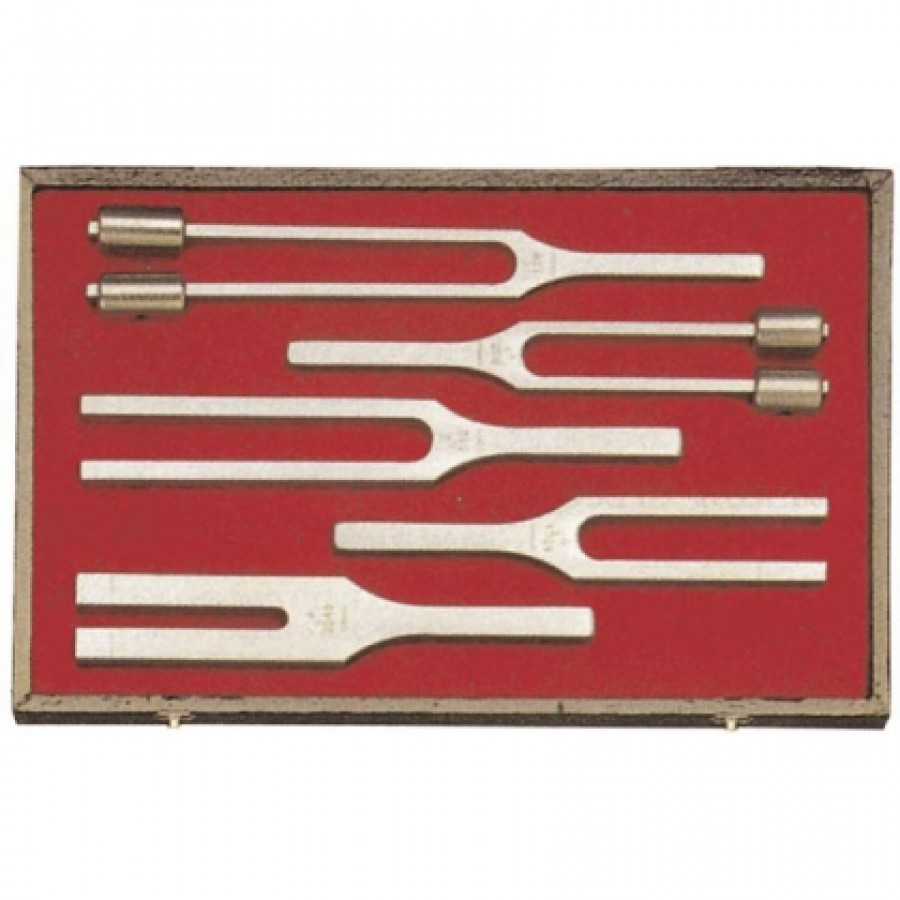 Περιλαμβάνει τα Διαπασών: 128 Hz με βαρύδια, 256 Hz με βαρύδια, 512 Hz, 1024 Hz και 2048 Hz.