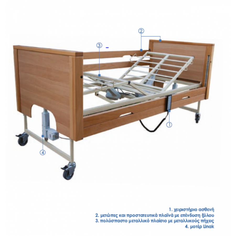 Νοσοκομειακό Κρεβάτι Ηλεκτρικό Ξύλινο πλήρες DALI ECON MOBIAK 0805070