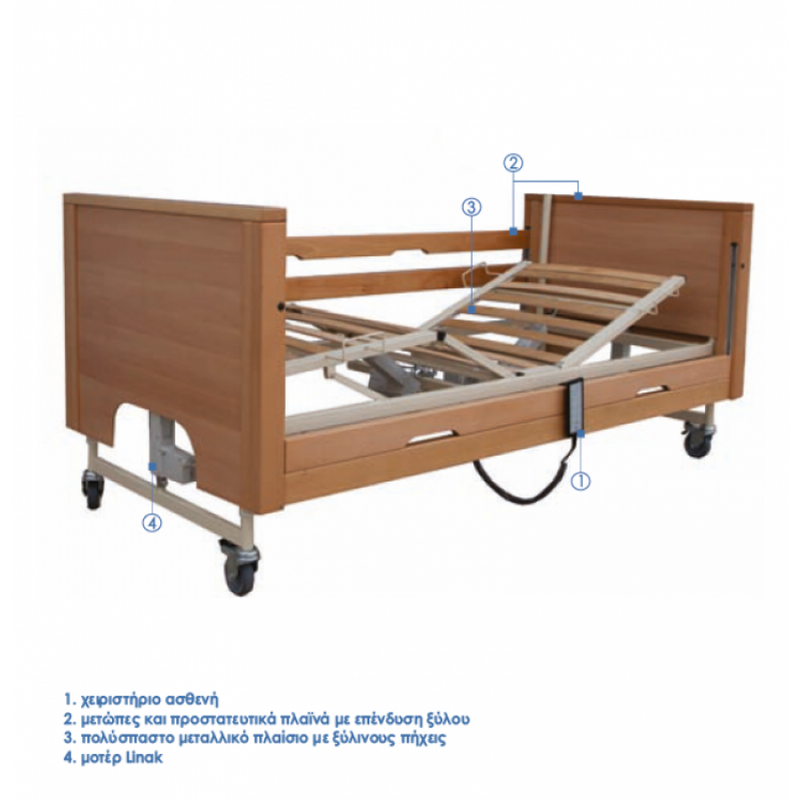 Νοσοκομειακό Κρεβάτι Ηλεκτρικό Ξύλινο πλήρες DALI ECON MOBIAK 0805070