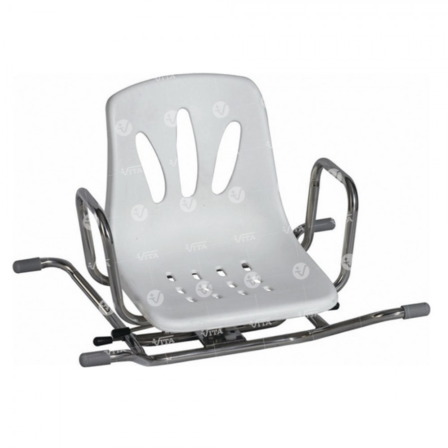 Κατασκευή από επιχρωµιωµένο µεταλλικό σκελετό. Άνετο πλαστικό κάθισµα µε οπές εύκολης διαφυγής του νερού. Πλαϊνά στηρίγµατα ασφαλείας ώστε να διευκολύνεται ο χρήστης κατά την είσοδο και έξοδο στη µπανιέρα. Μεταλλικός µοχλός ρύθµισης της περιστροφής του καθίσµατος.