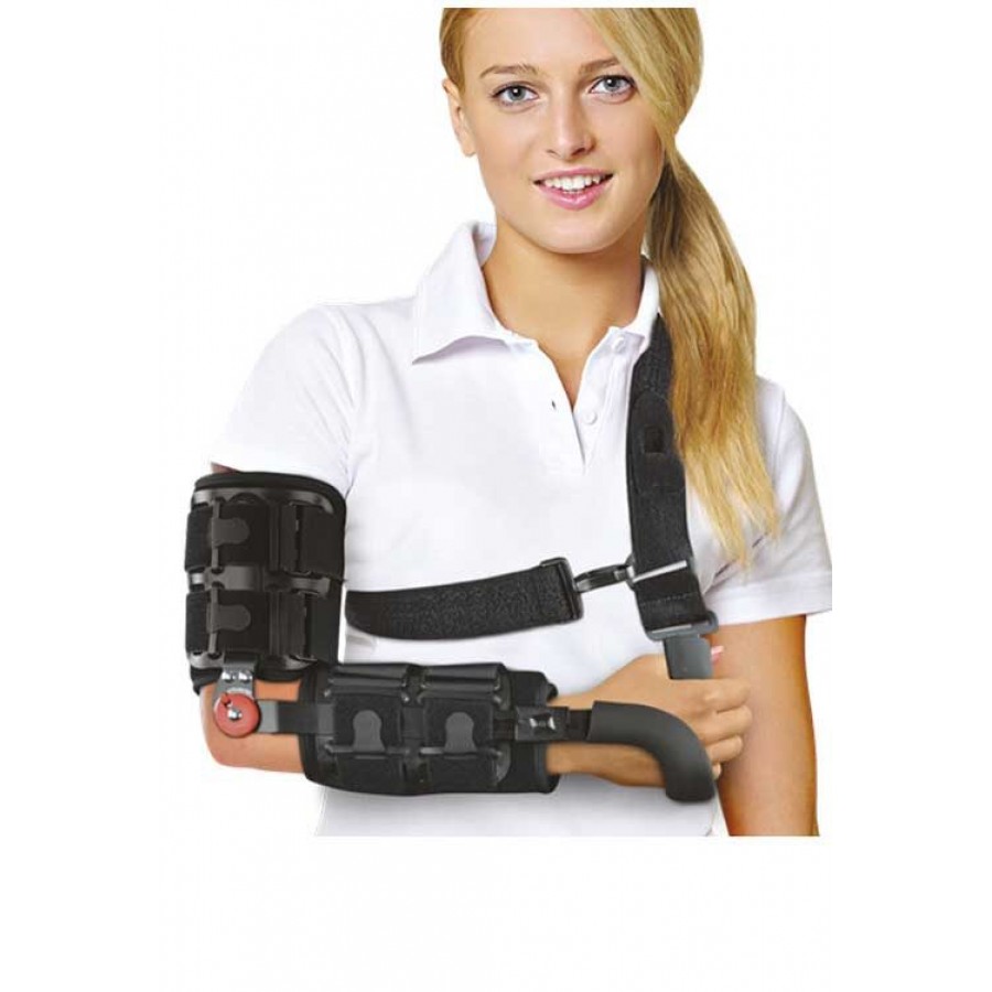 Αποτελείται από δύο τμήματα (βραχιονίου και αντιβραχίου), με ρυθμιζόμενες δέστρες velcro. Φέρει μαλακά μαξιλαράκια προστασίας του αγκώνος και ρυθμιζόμενη τιράντα ανάρτησης άκρας χειρός. Οι αρθρώσεις είναι κατασκευασμένες από υψηλής ποιότητος μεταλλικό υλικό.