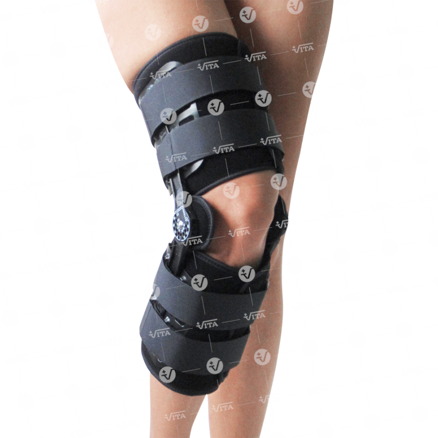 Ο πολυκεντρικός μηχανισμός 1R του νάρθηκα, επιτρέπει την κάμψη και την έκταση του γόνατος ανά διαστήματα 15°, με πύρους που τοποθετούνται με κλειδί allen, σε θέσεις επιλογής: α) Κάμψη: 0° - 120° β) Έκταση: 0°- 90°.