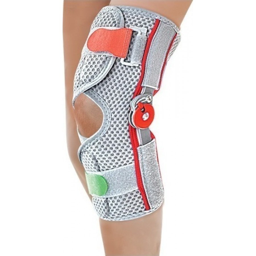 Παιδιατρικός νάρθηκας ανοιχτού τύπου με velcro κλείσιμο στον μηρό και την κνήμη. Κατασκευασμένος από ελαφρύ, αεριζόμενο, υψηλής ελαστικότητας, υλικό «Ρrosix». Φέρει δύο ρυθμιζόμενες ελαστικές velcro δέστρες για τη σωστή εφαρμογή και σταθεροποίηση της άρθρωσης του γόνατος.