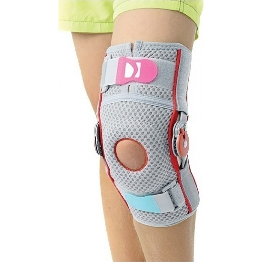 Παιδιατρικός νάρθηκας με οπή και εσωτερικό μαξιλάρι στήριξης και προστασίας της επιγονατίδος. Κατασκευασμένος από ελαφρύ, αεριζόμενο, υψηλής ελαστικότητας, υλικό «Ρrosix». Φέρει δύο ρυθμιζόμενες ελαστικές velcro δέστρες για σωστή εφαρμογή και σταθεροποίηση της άρθρωσης του γόνατος.