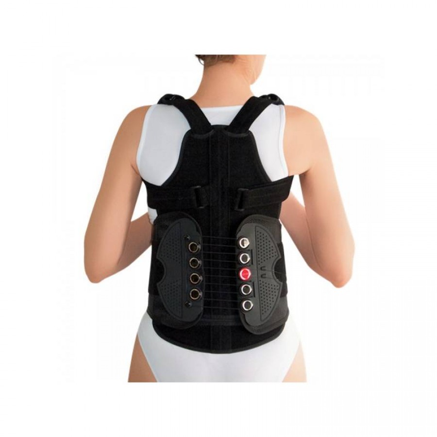 Αποτελείται από οπίσθιο θωρακοοσφυϊκό εργονομικό και ανατομικά σχεδιασμένο τμήμα. Έχει εσωτερική αφρώδη, μαλακή και υποαλλεργική επένδυση. Αυτοκόλλητη ζώνη με μηχανισμό βαθμιαίας αύξησης της συμπίεσης και σταθεροποίησης κορμού. Η ζώνη είναι αυτοκόλλητη και προσθαφαιρούμενη, αναλόγως της πορείας της υγείας του ασθενή. Ρυθμιζόμενες τιράντες στήριξης της σπονδυλικής στήλης με ενσωματωμένα μαξιλαράκια ώμου.