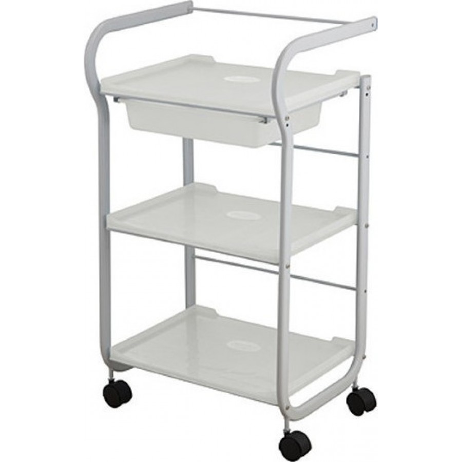 Εξοπλισμένο με 3 ευρύχωρα ράφια και συρόμενο πλαστικό δίσκο. Πλήρης κινητικότητα χάρη στους 4 τροχούς του και την λαβή στο πάνω μέρος.