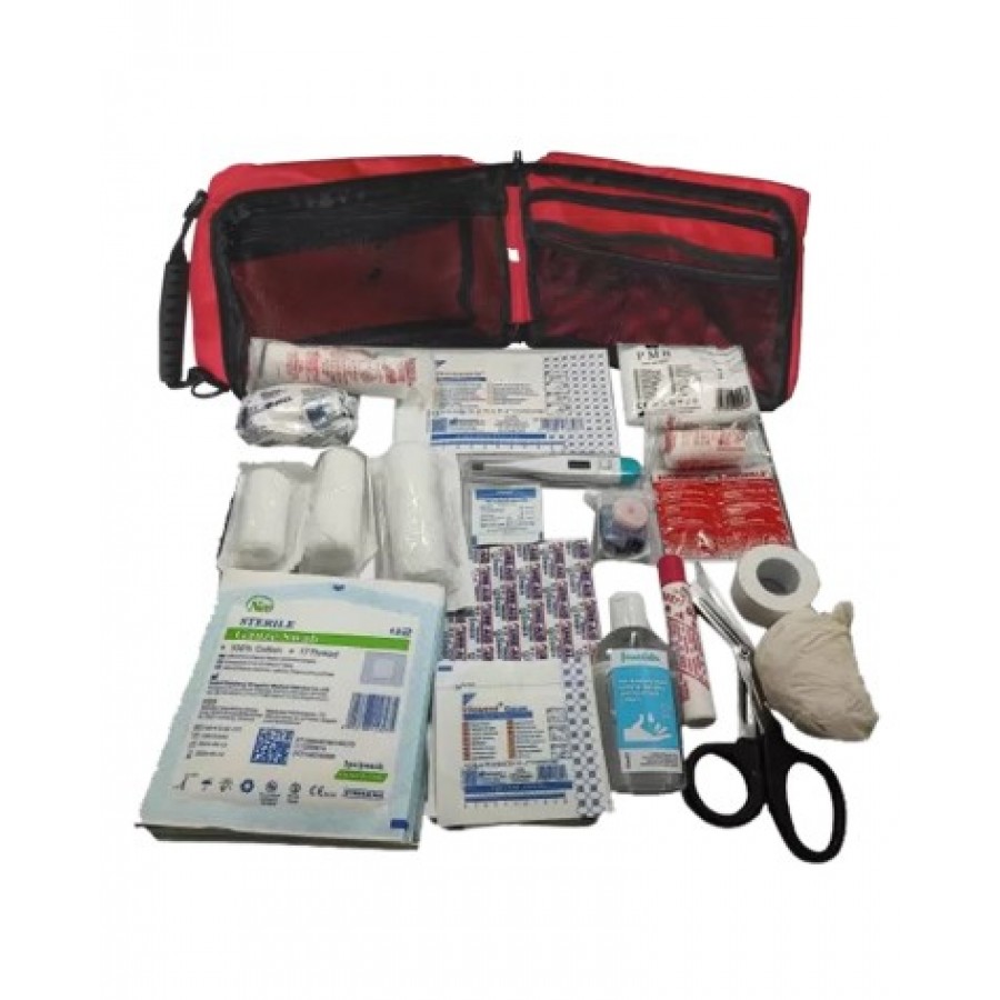 Το τσαντάκι περιέχει την αγγλική περιγραφή "FIRST AID" καθώς και την ελληνική επιγραφή "ΠΡΩΤΕΣ ΒΟΗΘΕΙΕΣ" όπως προβλέπεται από την παράγραφο Δ. της εγκυκλίου 19231/19.09.2025 του υπουργείου τουρισμού.