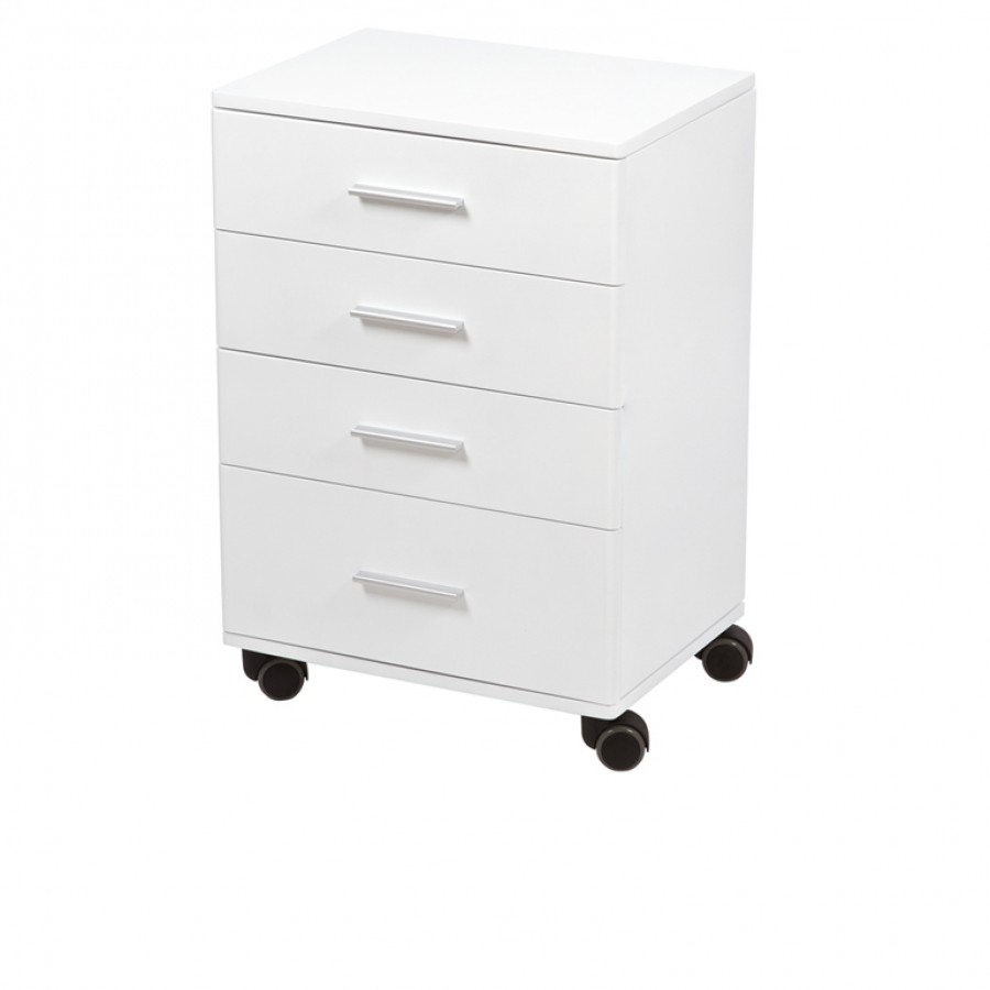 Tροχήλατη συρταριέρα αποθήκευσης Handy από την ισπανική εταιρία Weelko. Κομψή λευκή συρταριέρα από λευκή μελαμίνη. Διαθέτει 4 συρτάρια σχεδιασμένα για εύκολη αποθήκευση ιατρικού εξοπλισμού και αναλωσίμων σε ιατρικά κέντρα, ιατρεία, κλινικές, νοσοκομεία και γηροκομεία. Πλήρης κινητικότητα χάρη στους 4 τροχούς του.